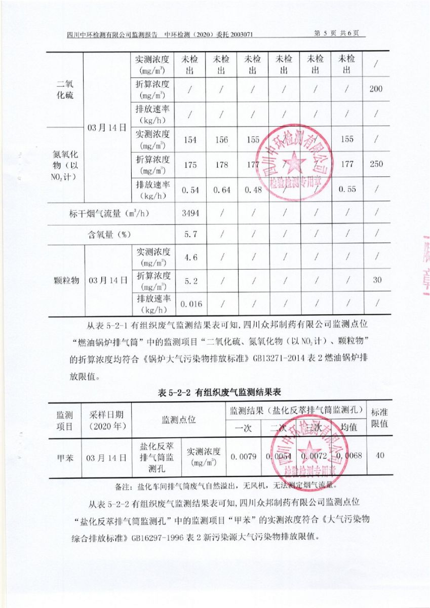 2020年一季度四川众邦制药有限公司废水、废气(锅炉、VOCs)监测