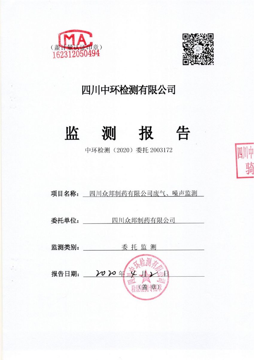 2020年众邦一季度车间有组织废气、噪声监测